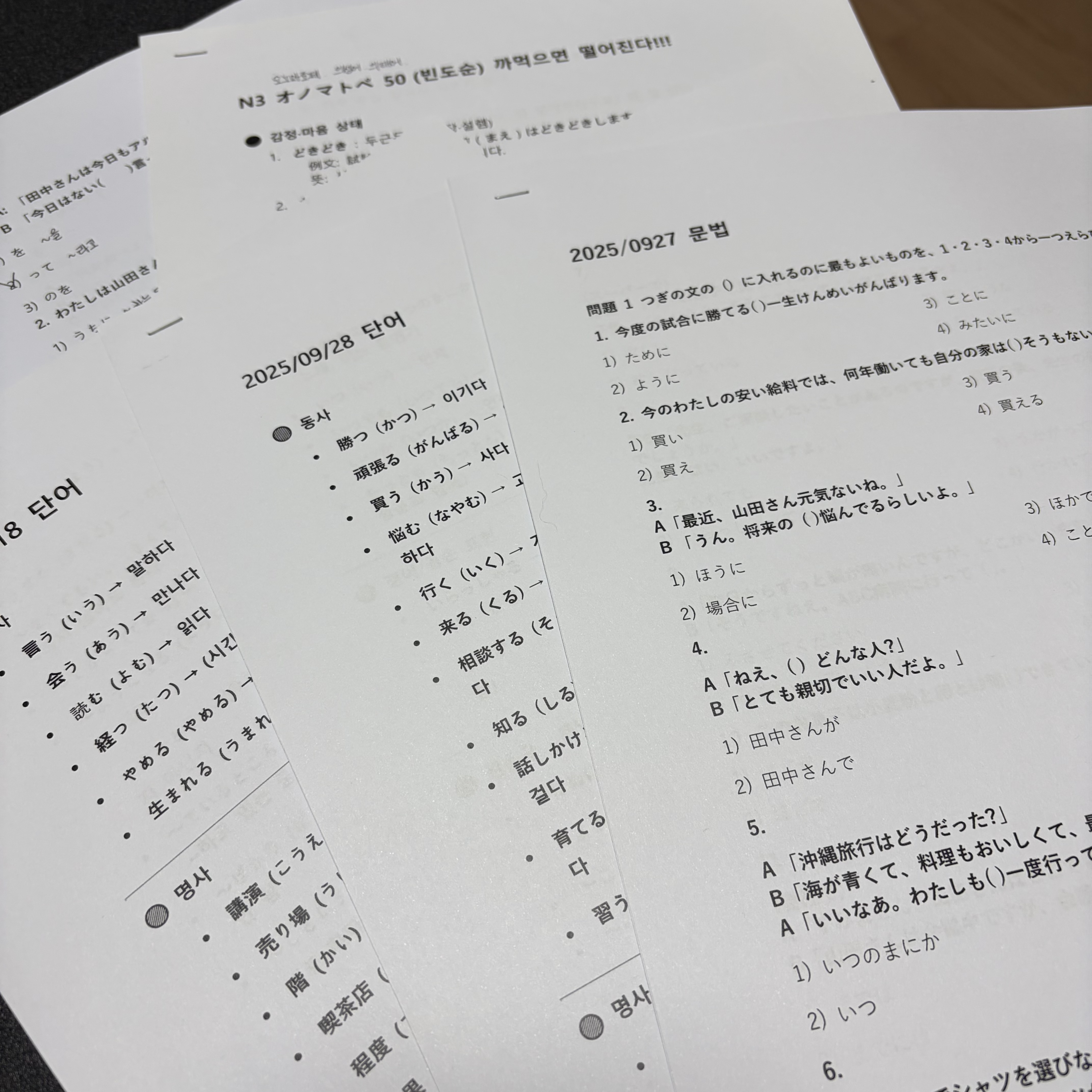 안녕하세요! 현재 JLPT N3 시험을 준비하고 있습니다.